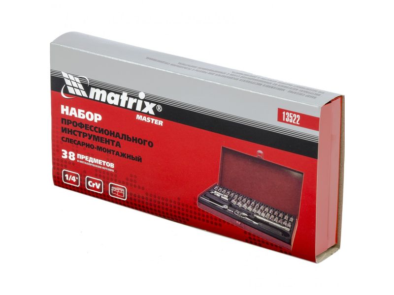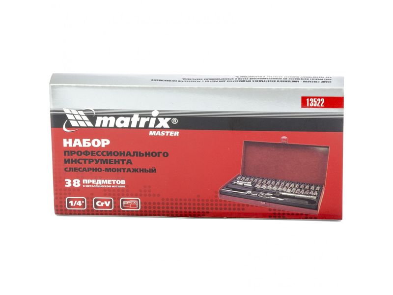 Слесарно-монтажный набор Matrix 13522 состоит из 38 предметов с присоединительным квадратом 1/4 и используется для монтажа и демонтажа гаек, болтов, шурупов, винтов и другого резьбового крепежа. Незаменим в мастерской или гараже, пригодится в быту. В набор входят торцевые головки размером от 4 до 14 мм, что позволяет решать широкий спектр задач.
