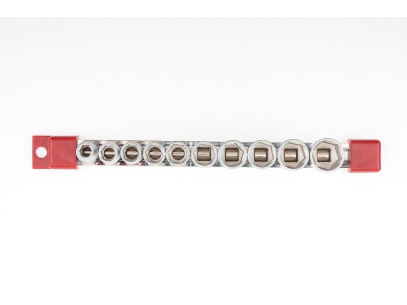 Быстрый поиск нужной насадки — каждая торцевая головка маркирована ярко-красной полоской и имеет обозначение типоразмера.