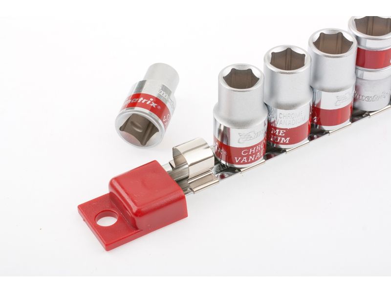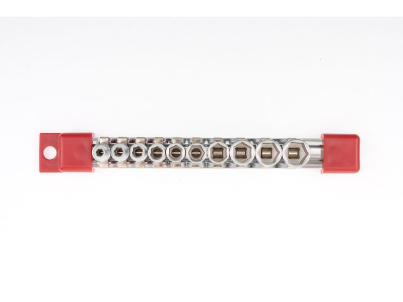 Быстрый поиск нужной насадки — каждая торцевая головка маркирована ярко-красной полоской и имеет обозначение типоразмера.