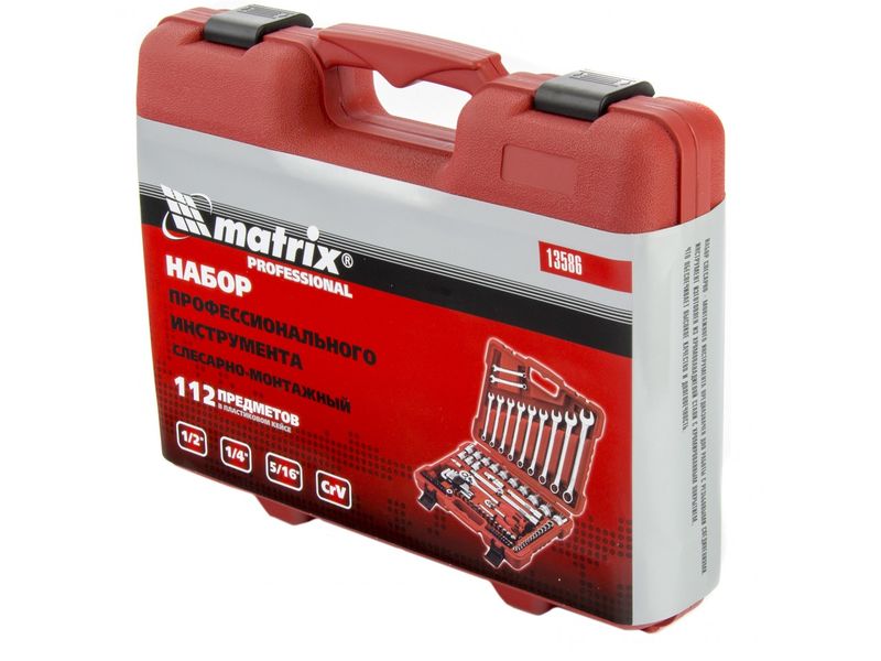 Слесарно-монтажный набор Matrix 13586 с с присоединительными квадратами 1/4, 1/2 и 5/16 состоит из 112 предметов и используется для монтажа и демонтажа резьбовых соединений. Включает карданные шарниры, упрощающие работу с труднодоступным крепежом. Набор будет полезен в авторемонтной мастерской, пригодится также и в быту.