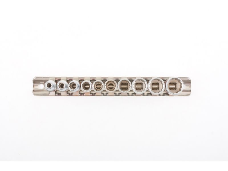 Удобное хранение — благодаря металлической планке-держателю торцевые головки всегда будут под рукой и не потеряются.