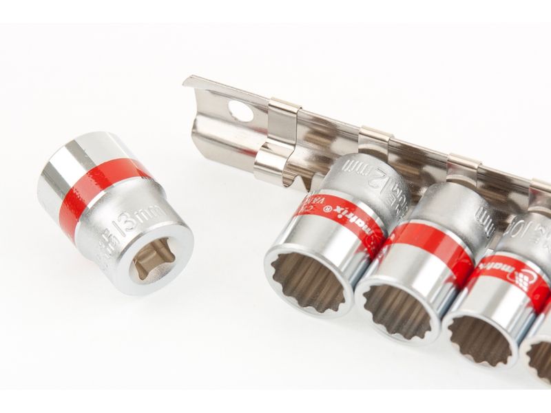 Быстрый поиск нужной торцевой головки — на корпусах насадок имеются красные полоски и маркировка с обозначением размера.