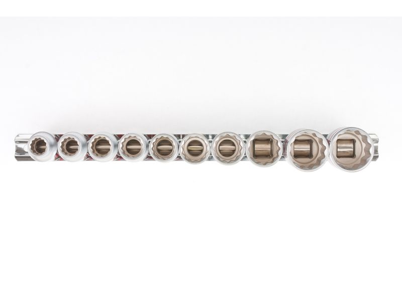 Удобное хранение — благодаря металлической планке-держателю торцевые головки всегда будут под рукой и не потеряются.