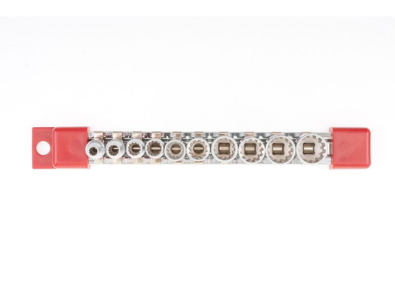 Быстрый поиск нужной торцевой головки — на корпусах насадок имеются красные полоски и маркировка с обозначением размера.