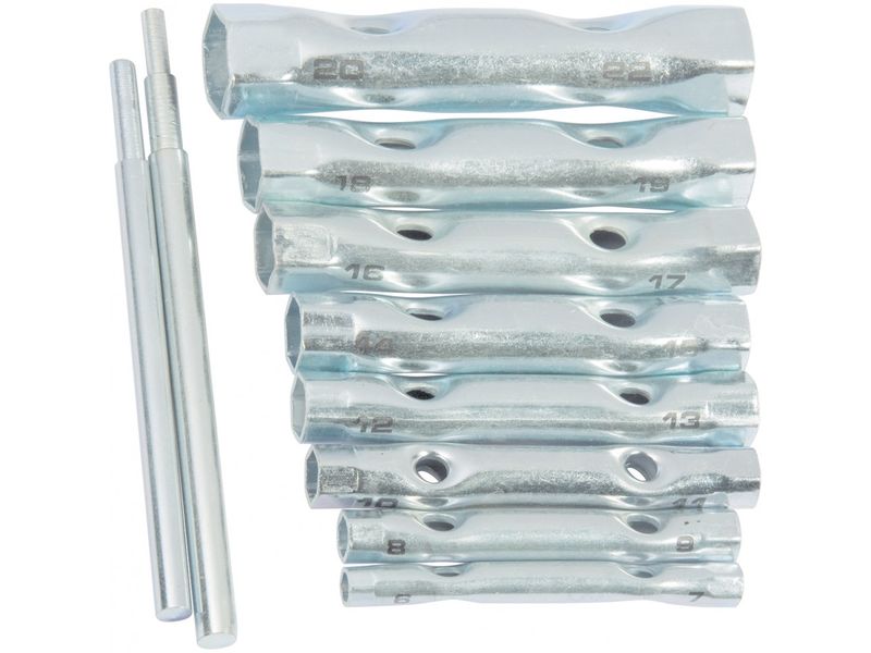 Набор Sparta 137525 включает 9 предметов: 8 оцинкованных торцевых ключей-трубок размером 6-22 мм и вороток. Позволяет откручивать и закручивать крепежные элементы с шестигранным профилем, расположенные в труднодоступных местах. Входящий в комплект вороток облегчает вращение ключей.