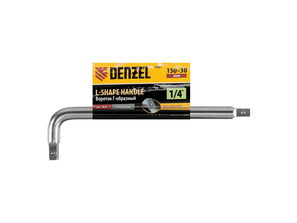 Г-образный вороток Denzel 14061 из стали CrV, размером 150 х 40 мм, с присоединительным квадратом 1/4, с покрытием «матовый хром», предназначен для ручного монтажа и демонтажа гаек, болтов и другого резьбового крепежа с помощью торцевых головок. Может использоваться в бытовой и профессиональной сфере: для ремонта велосипедов, автомобилей, станков.