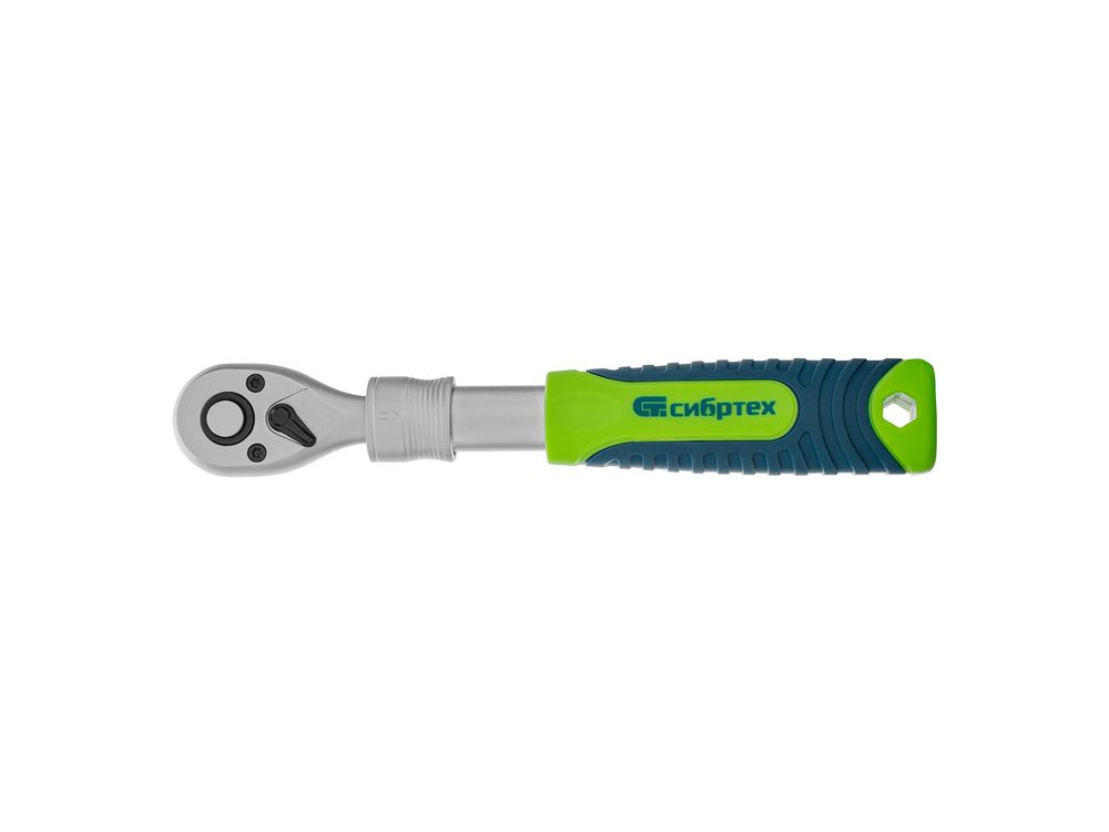 Ключ-трещотка 3/8 Сибртех 14076 с телескопической рукояткой длиной 215-315 мм, храповым механизмом с 72 зубьями и функцией быстрого сброса, — инструмент для работы с резьбовым крепежом. Используется совместно с торцевыми головками, удлинителями, адаптерами. Телескопическая рукоятка упрощает работу с труднодоступным крепежом, а также позволяет увеличить прикладываемое усилие. Трещоточный механизм с 72 зубьями облегчает работу, угол поворота составляет 5°, что удобно в условиях ограниченного пространства. Инструмент пригодится в мастерской и гараже.