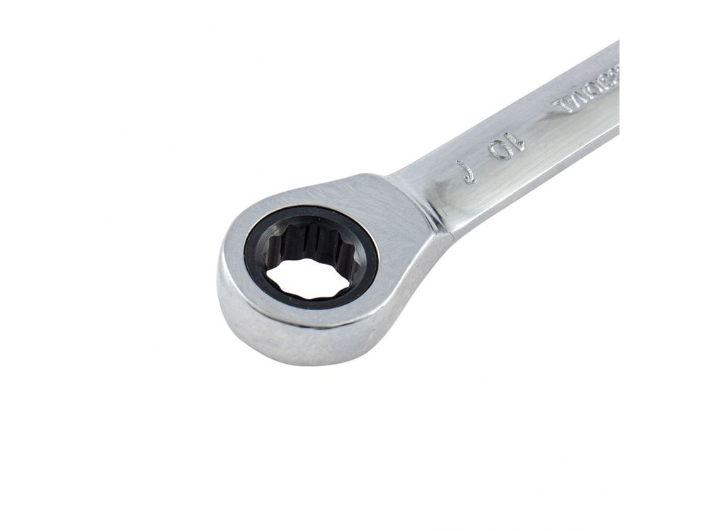 Накидной трещоточный ключ Matrix 14497 из стали CrV, с покрытием из зеркального хрома, пригодится частным мастерам и профессионалам для монтажа и демонтажа резьбовых соединений размером 8 и 10 мм. Ключ будет полезен в гараже, на производстве, строительной площадке, в быту. Трещоточный механизм с 72 зубьями повышает эффективность и скорость закручивания/откручивания болтов, гаек и других крепежей.