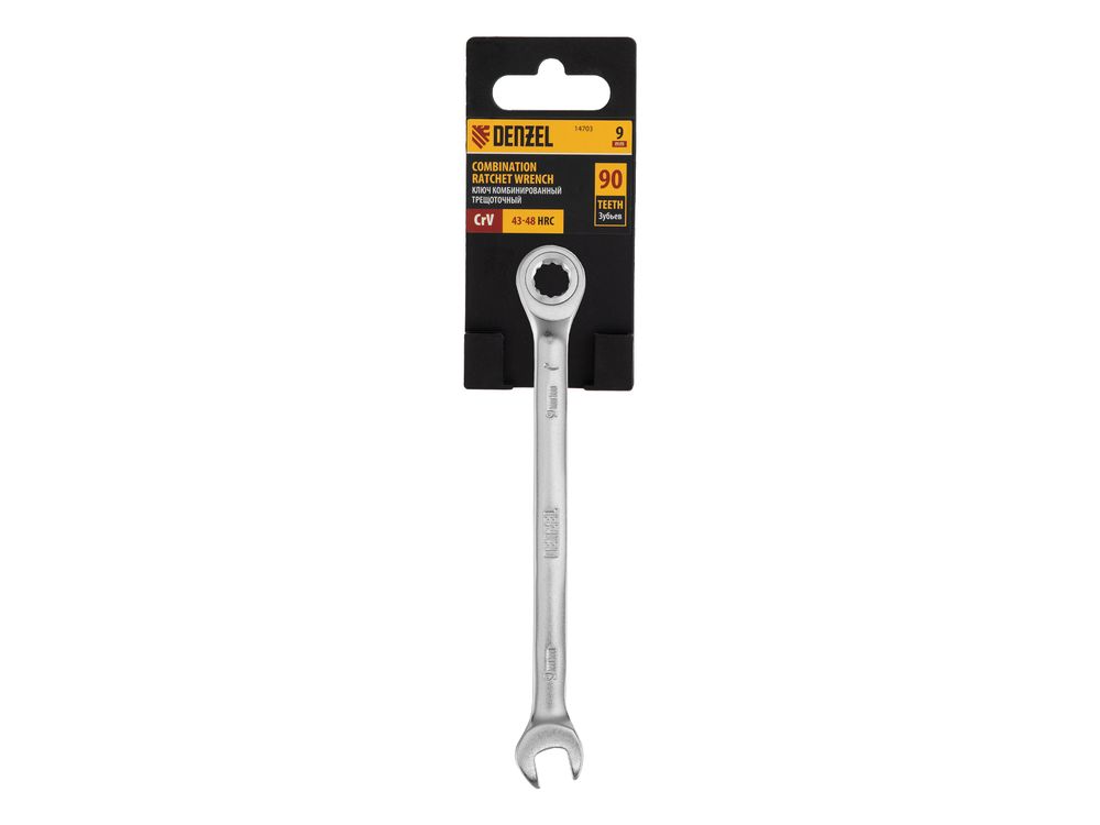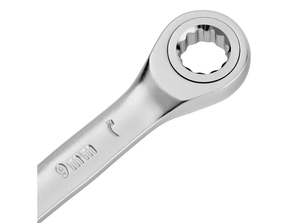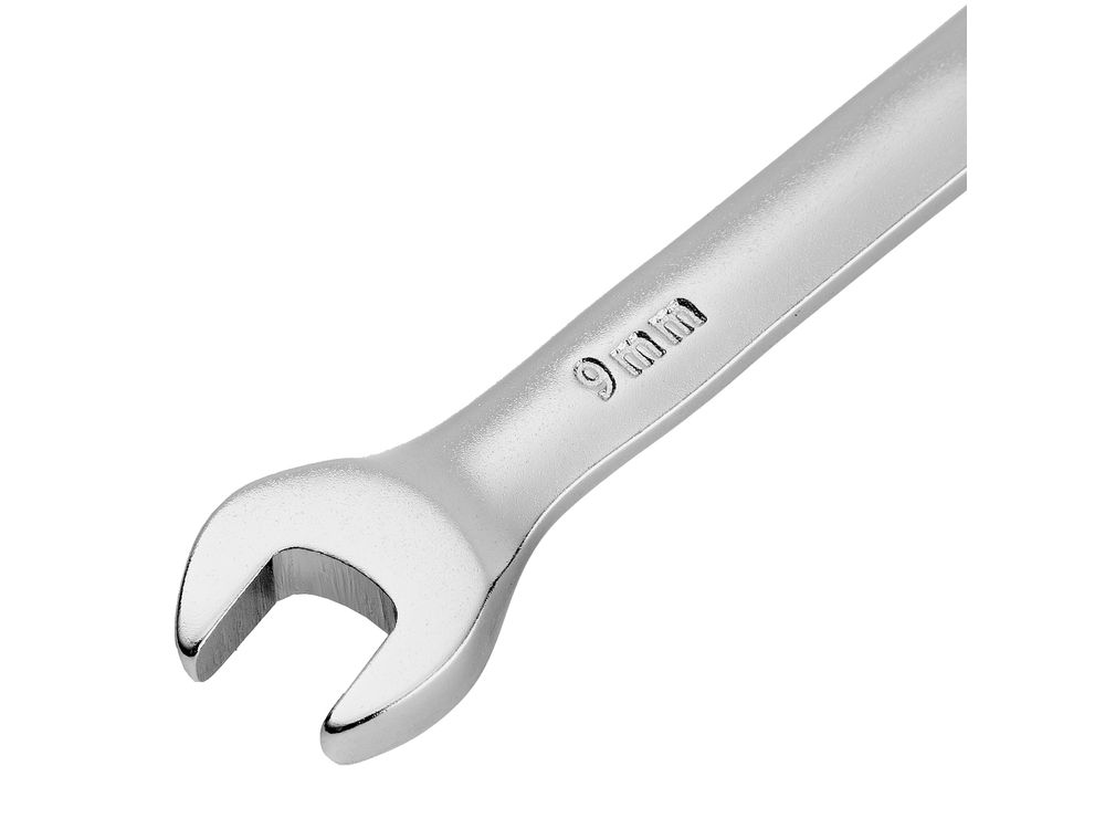 Ключ комбинированный трещоточный, 9 мм, CrV, матовый хром-343