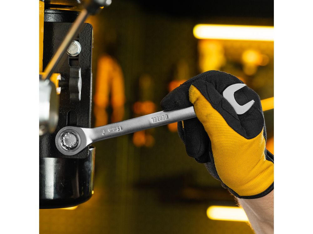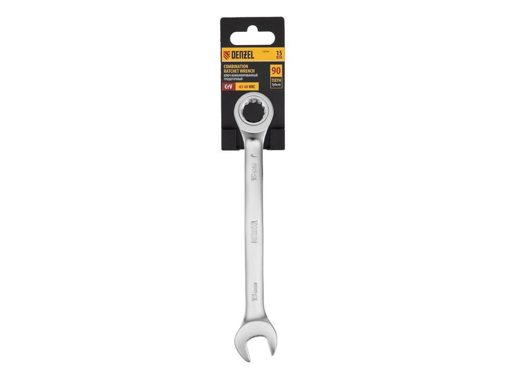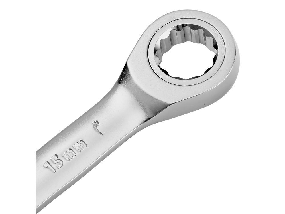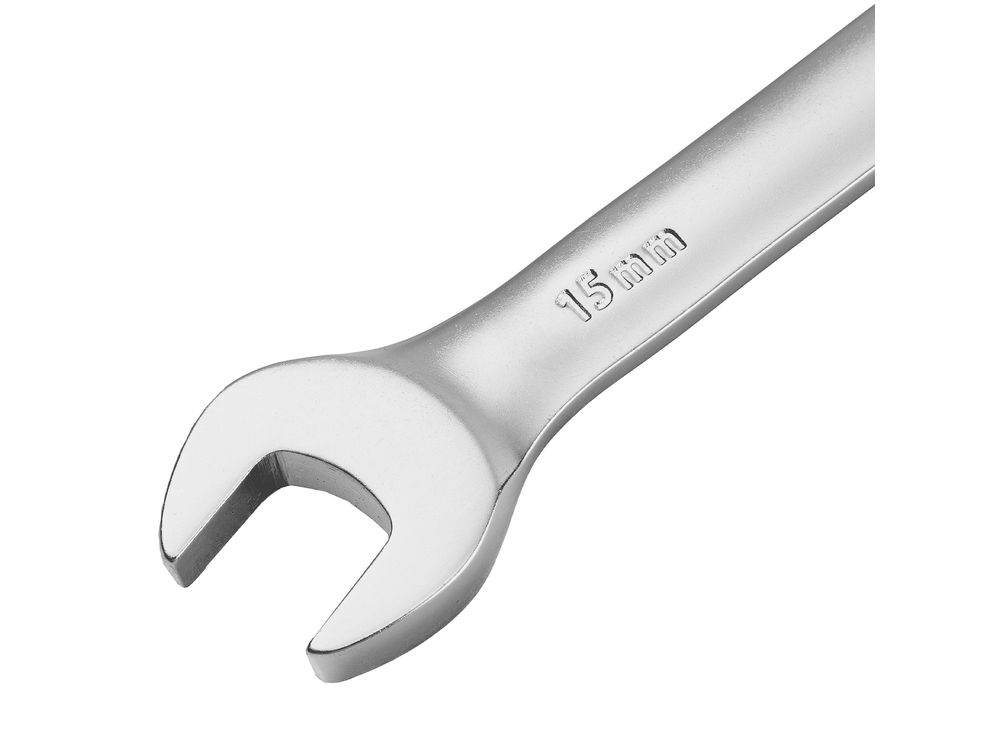 Ключ комбинированный трещоточный, 15 мм, CrV, матовый хром-343