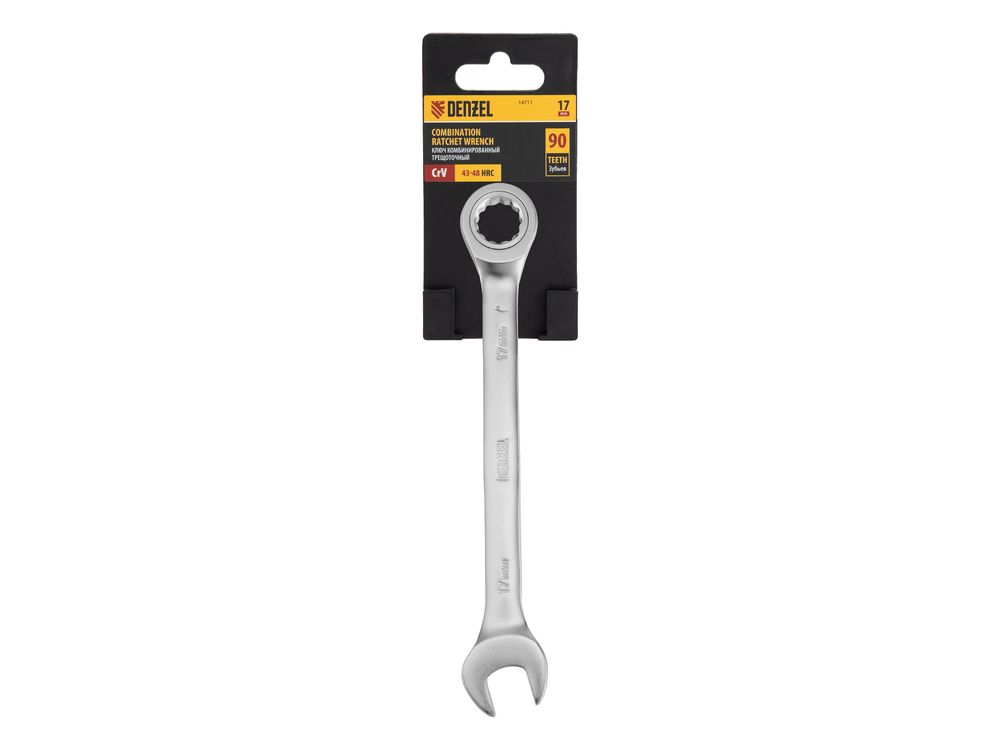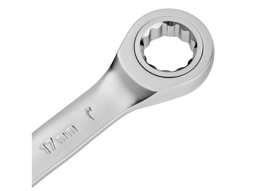 Ключ комбинированный трещоточный, 17 мм, CrV, матовый хром-343
