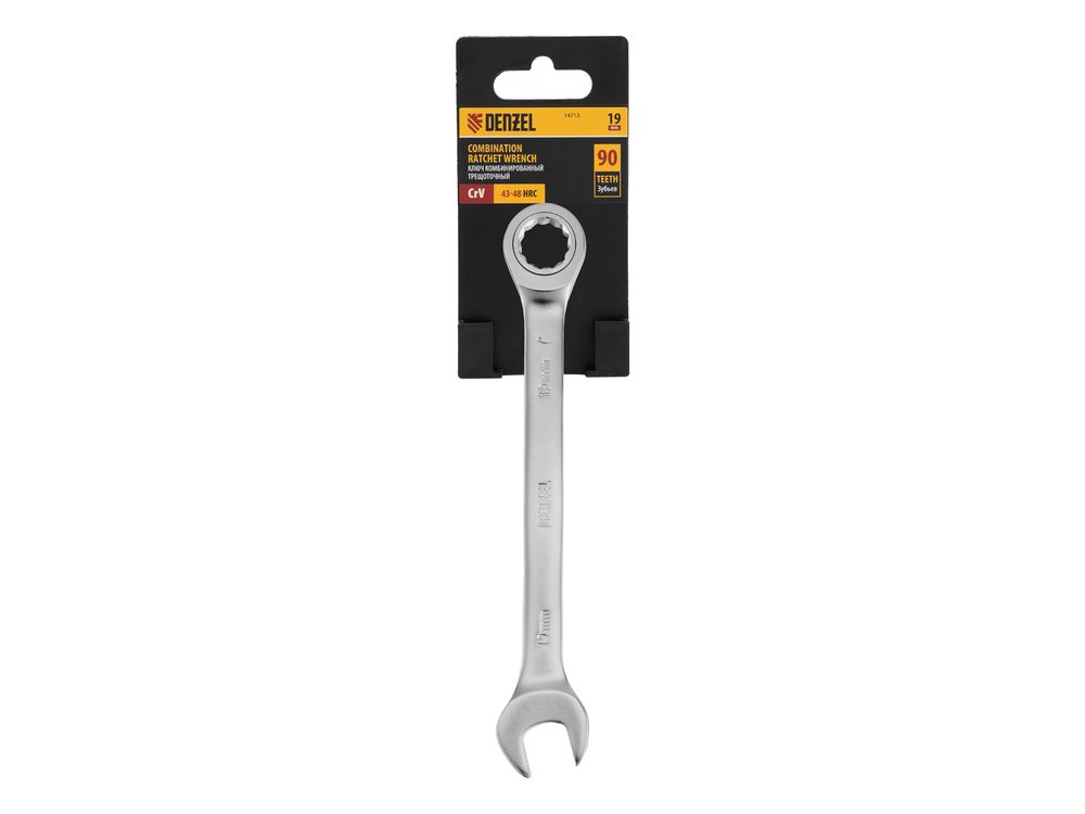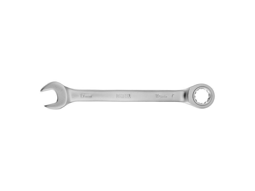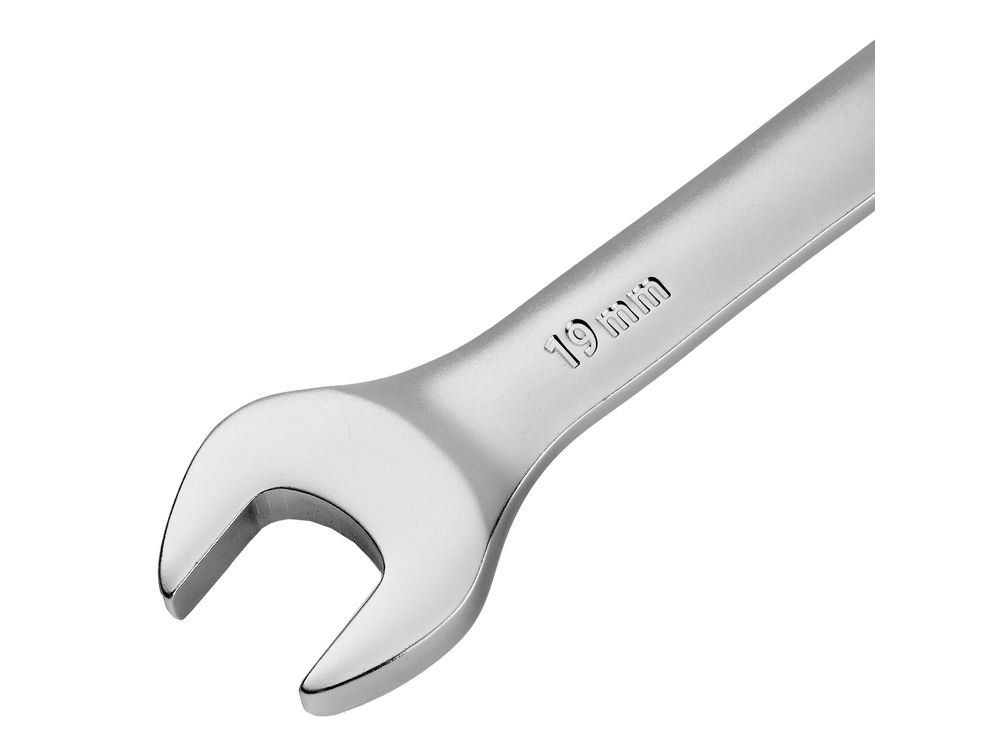 Ключ комбинированный трещоточный, 19 мм, CrV, матовый хром-343
