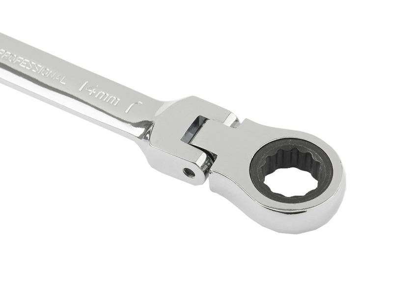 Удобная работа в труднодоступных местах — храповой механизм на 72 зуба обеспечивает плавное вращение (шаг трещотки составляет 5°), а шарнир позволяет поворачивать рабочую часть под углом.