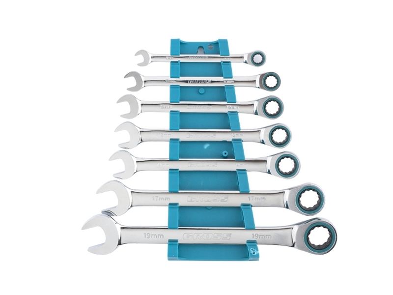 Набор ключей комбинированных с трещоткой, 8 - 19 мм, 7шт., CrV