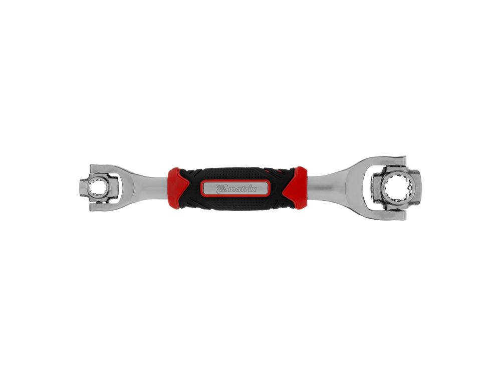 Ключ универсальный 48 в 1 Matrix 14999 из стали CrV имеет 8 размеров головок: 8 мм, 10 мм, 11 мм, 13 мм, 14 мм, 16 мм, 17 мм, 19 мм. Подходит для различных профилей: 6-гранных, 8-гранных, 12-гранных, Square, Torx, Spline. Предназначен для монтажа и демонтажа болтовых соединений. Поворот головки на 360° и угол наклона 45° позволяют работать в труднодоступных местах. Конструкция головки позволяет закручивать и откручивать крепежи на высоких шпильках.
