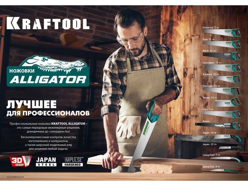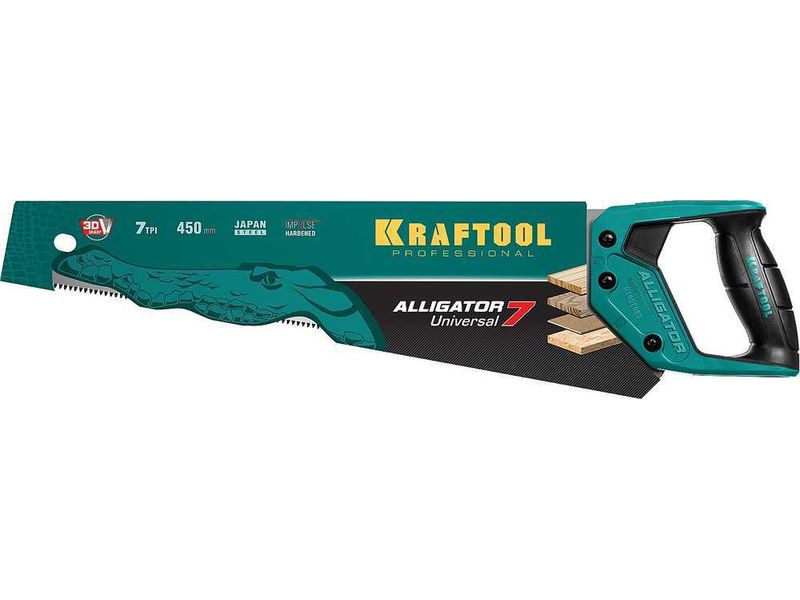 Ножовка универсальная "Alligator 7", 450 мм, 7 TPI 3D зуб, KRAFTOOL