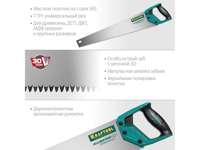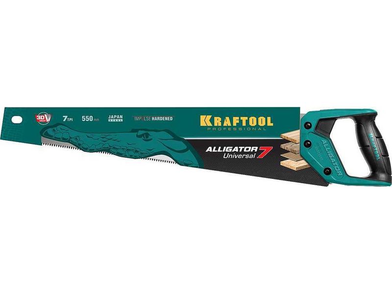 Купить Ножовка универсальная "Alligator 7", 550 мм, 7 TPI 3D зуб. KRAFTOOL