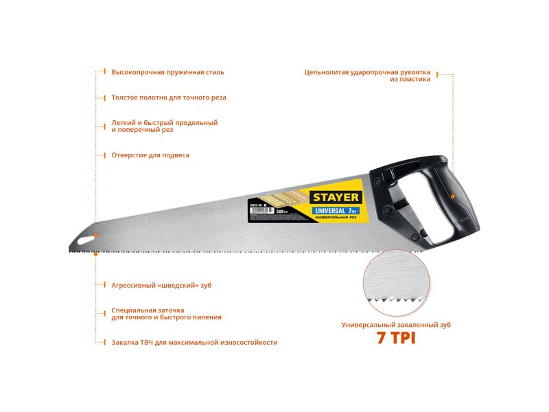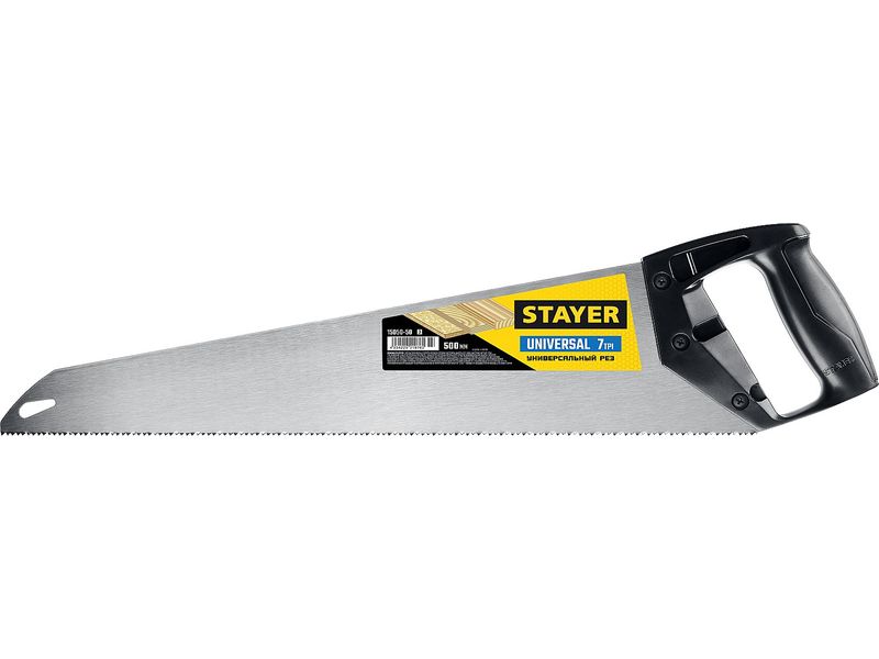 Ножовка универсальная (пила) "Universal", 500мм,7TPI, закаленный зуб, рез вдоль и поперек волокон, для средних заготовок, фанеры, ДСП, МДФ, STAYER