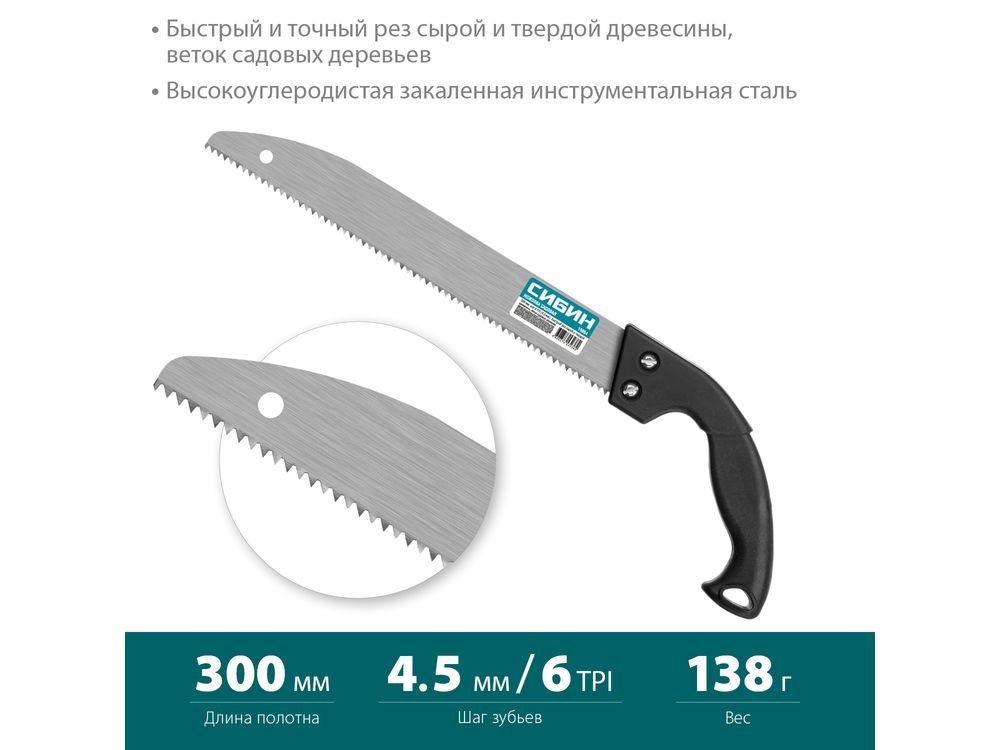 Купить Садовая ножовка СИБИН 300 мм, шаг 4,5 мм