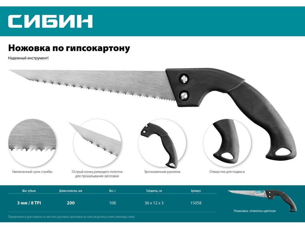 Купить Выкружная ножовка по гипсокартону 200 мм, 8 TPI (3 мм), СИБИН