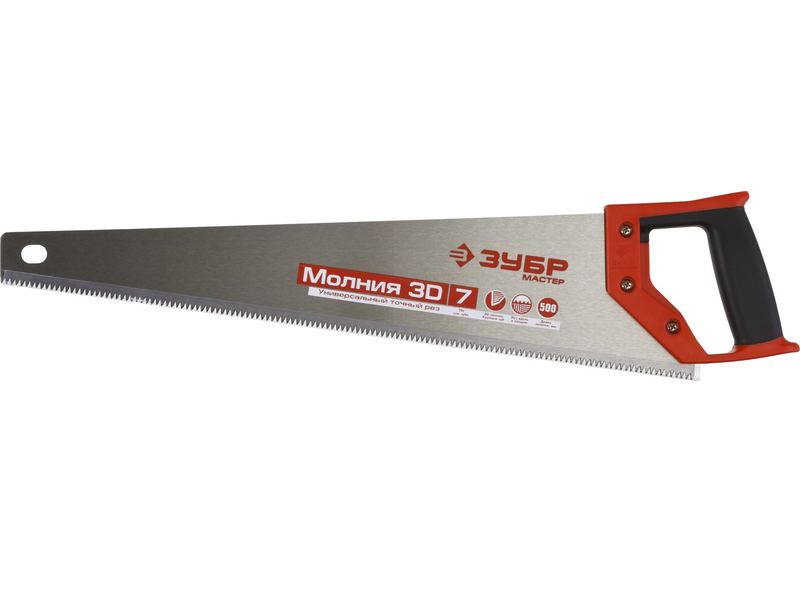 Ножовка универсальная (пила) ЗУБР МОЛНИЯ-3D 500 мм, 7TPI, 3D зуб, точный рез вдоль и поперек волокон, для средних заготовок из всех видов материалов