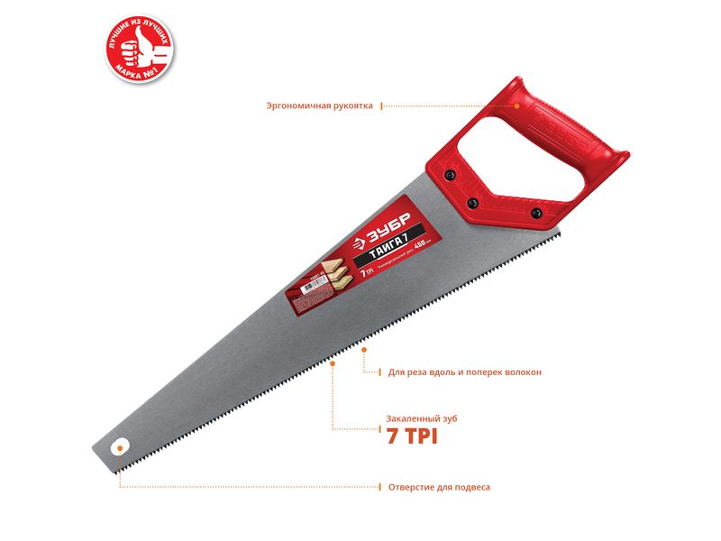 Ножовка универсальная (пила) ТАЙГА-7 450мм,7TPI, закаленный зуб, рез вдоль и поперек волокон, для средних заготовок, фанеры, ДСП, МДФ, ЗУБР