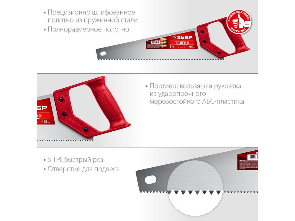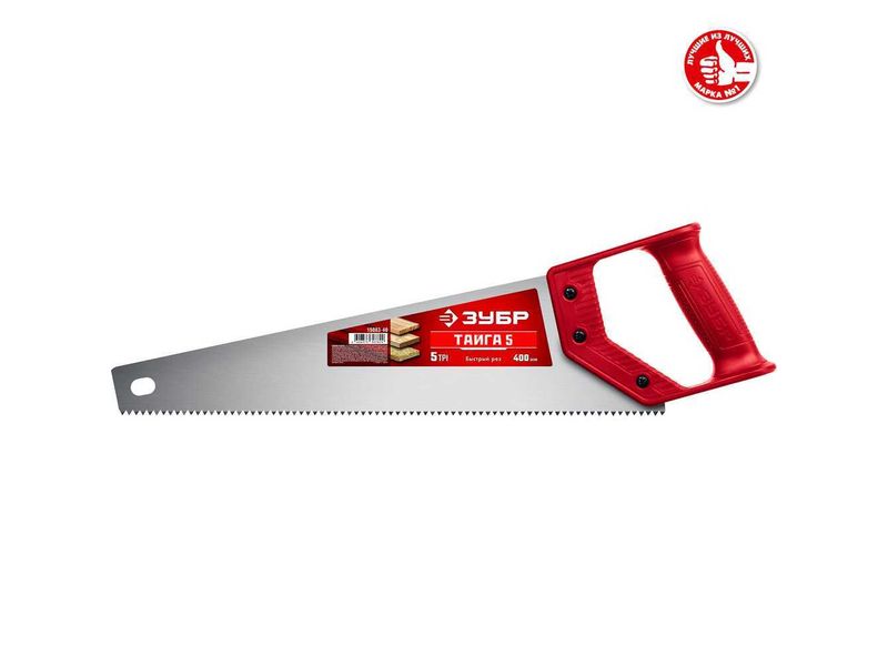Ножовка для быстрого реза "ТАЙГА-5" 400 мм, 5 TPI, быстрый рез поперек волокон, для крупных и средних заготовок, ЗУБР