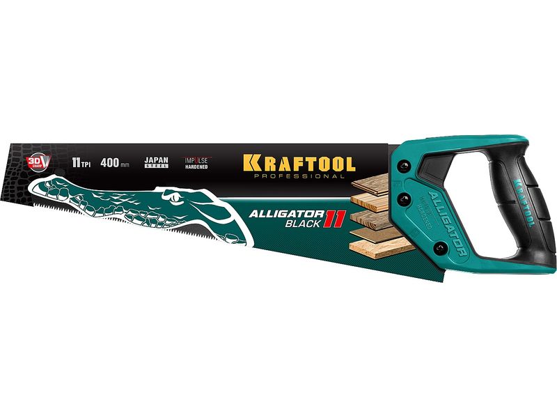 Купить Ножовка для точного реза "Alligator BLACK", 400 мм, 11 TPI 3D зуб, KRAFTOOL