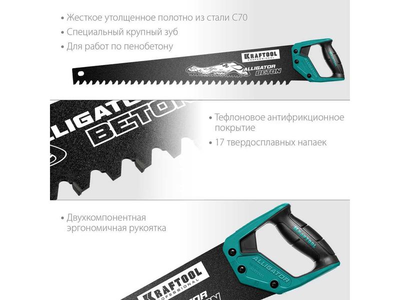 Ножовка по бетону (пила) "Alligator Beton" 700 мм, твердосплавные напайки, для пиления блоков чистого бетона, KRAFTOOL