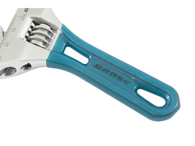 Разводной ключ Gross 15564 длиной 120 мм, из стали CrV, с укороченной ручкой и диапазоном раскрытия зева до 28 мм, подходит для работы как с мелкими, так и с крупными крепежными элементами. Губки раскрываются на 50% больше, чем у стандартных ключей. Ребристая рабочая поверхность губок обеспечивает надежный захват деталей и повышает точность работы.