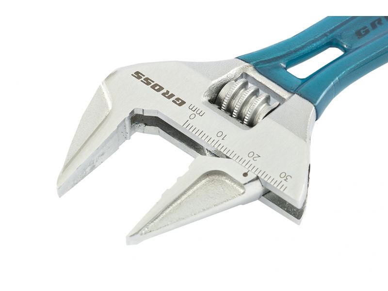 Разводной ключ Gross 15565 длиной 140 мм, из стали CrV, с укороченной ручкой и диапазоном раскрытия зева до 32 мм, подходит для работы как с мелкими, так и с крупными крепежными элементами. Губки раскрываются на 50% больше, чем у стандартных ключей. Ребристая рабочая поверхность губок обеспечивает надежный захват деталей и повышает точность работы.