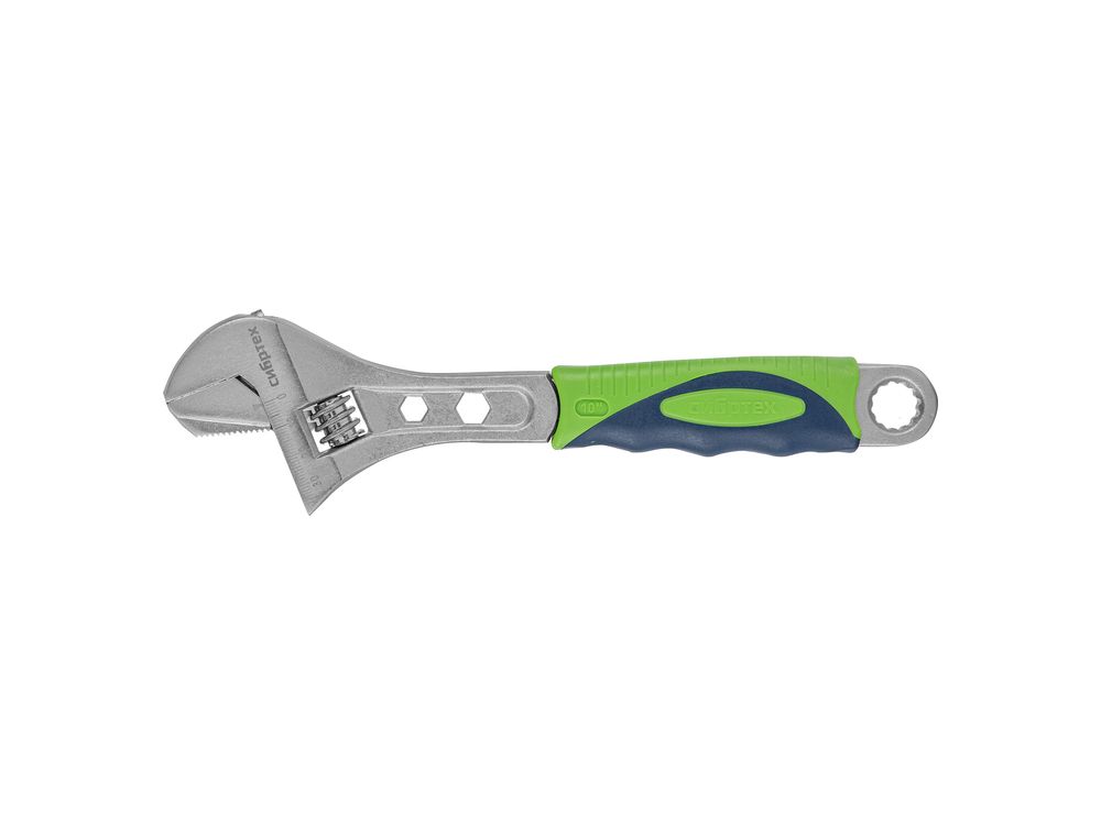 Разводной ключ Сибртех 15599 длиной 250 мм, с переставной губкой и двухкомпонентной рукояткой, предназначен для выполнения монтажных работ. Позволяет справляться с болтами разного размера и способен заменить целый арсенал гаечных ключей. Переставная губка с зазубринами позволяет использовать ключ для работы предметами без специального профиля, например, трубами.