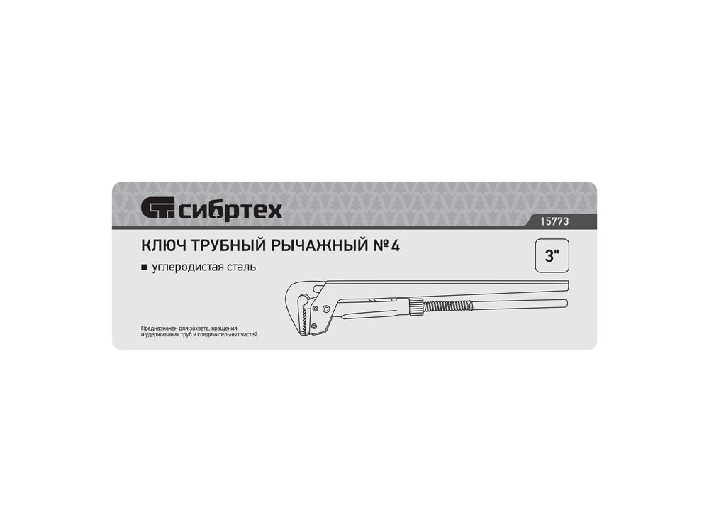 Кованый трубный рычажный ключ Сибртех №4 15773, тип «L», используется для захвата и вращения труб диаметром 3, а также других деталей со специальным профилем и без него. Рычажный механизм увеличивает рабочее усилие, снижая нагрузку на руки мастера. Инструмент рассчитан на бытовое и профессиональное применение.
