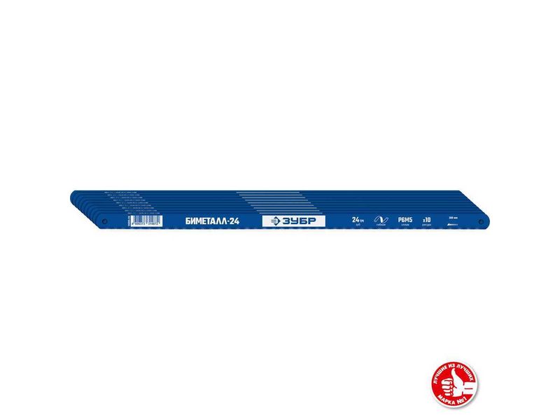 Биметаллическое полотно по металлу, 24 TPI: универсальный рез, 300 мм, высококачественная быстрорежущая сталь Р6М5, 10 шт, ЗУБР БИМЕТАЛЛ-24 |