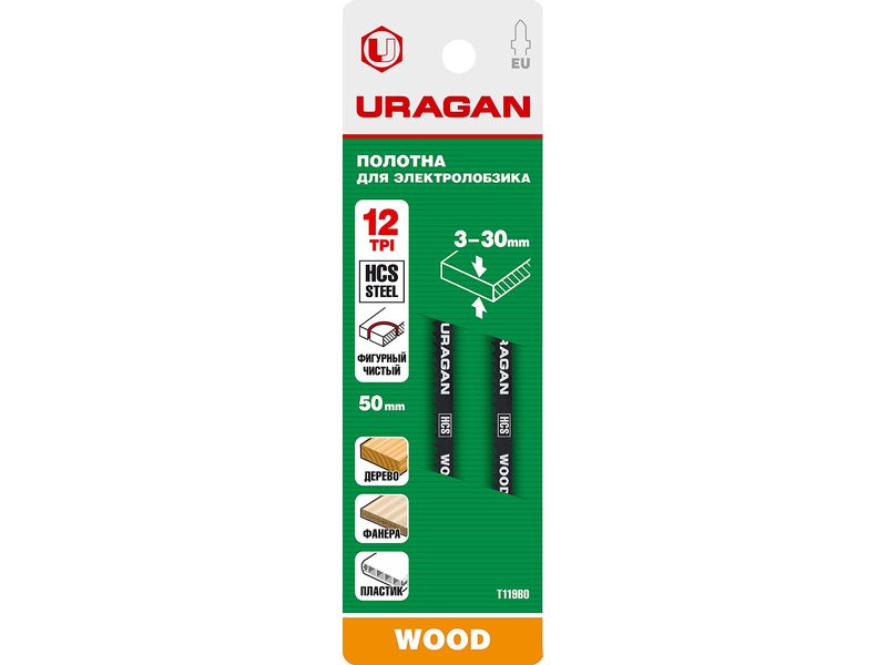 Полотна URAGAN, T119BO, HCS, по дереву, ДСП, фигур. рез, T-хвост., шаг 2мм, 75/50мм, 2шт-418