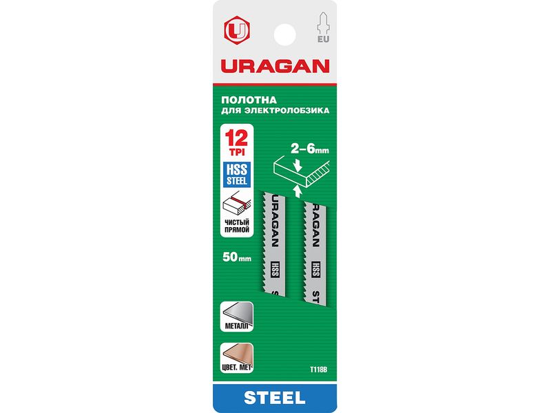 Полотна URAGAN T118B, по металлу, HSS, T-хвост, шаг 2мм, 75/50мм, 2шт,-418