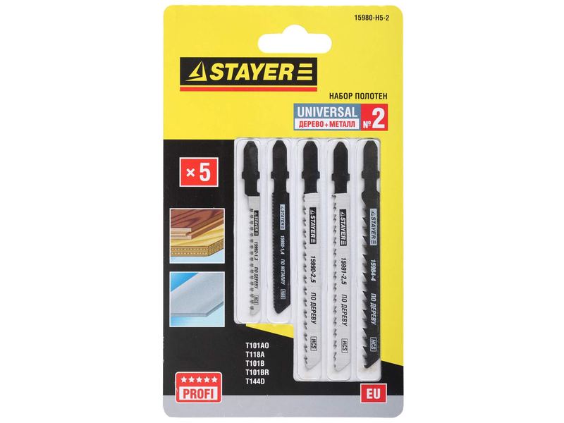 Набор STAYER Пилки "УНИВЕРСАЛ №2" для эл/лобзика, по дереву и металлу, EU-хвост., 5шт