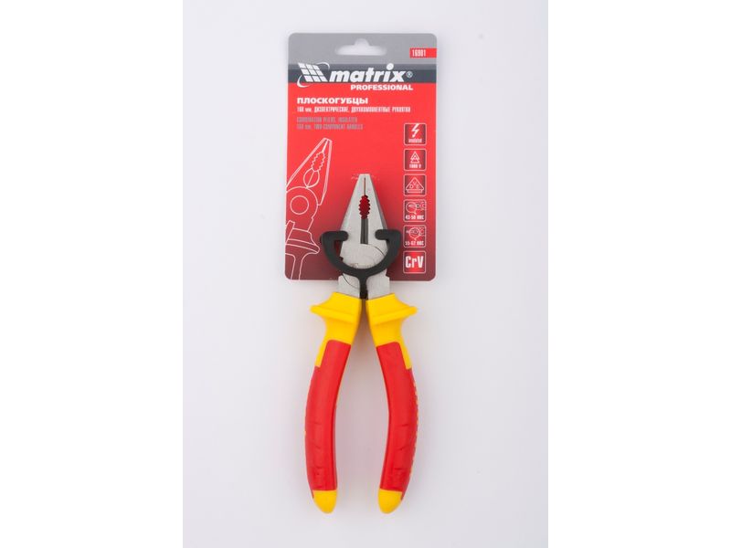 Комбинированные плоскогубцы Matrix Insulated 16901 длиной 160 мм, с двухкомпонентными рукоятками, предназначены для зажимания различных деталей, крепежных элементов, проводов или проволоки. Благодаря специальным выемкам на рабочих поверхностях инструмент может захватывать круглые предметы, а острые насечки не дают губкам соскальзывать. Режущие кромки предназначены для перекусывания проволоки. Двухкомпонентные рукоятки выполнены из диэлектрического материала. Инструмент пригодится во время строительства, ремонта, будет полезен в слесарной мастерской, а также дома или в гараже. Не допускается работа с плоскогубцами при наличии напряжения в сети!