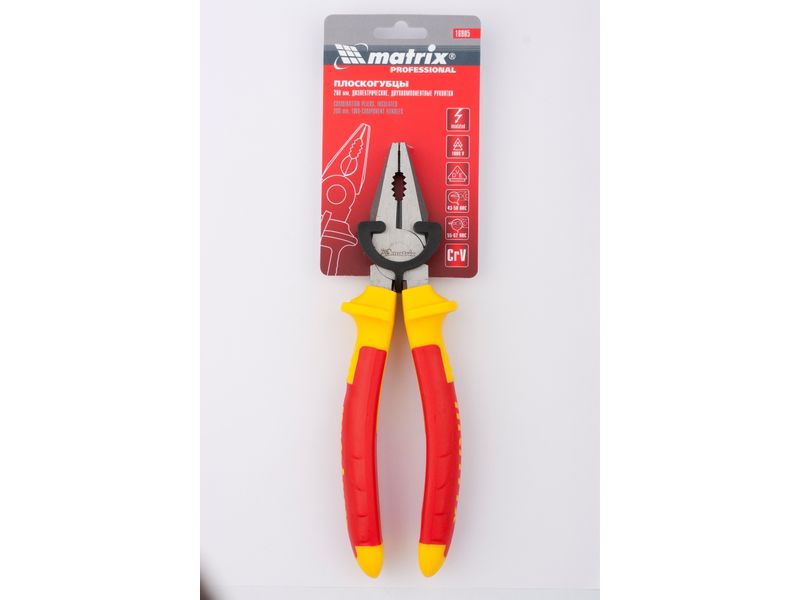 Комбинированные плоскогубцы Matrix Insulated 16905 длиной 200 мм, с двухкомпонентными рукоятками, предназначены для зажимания различных деталей, крепежных элементов, проводов или проволоки. Благодаря специальным выемкам на рабочих поверхностях инструмент может захватывать круглые предметы, а острые насечки не дают губкам соскальзывать. Режущие кромки предназначены для перекусывания проволоки. Двухкомпонентные рукоятки выполнены из диэлектрического материала. Инструмент пригодится во время строительства, ремонта, будет полезен в слесарной мастерской, а также дома или в гараже. Не допускается работа с плоскогубцами при наличии напряжения в сети!