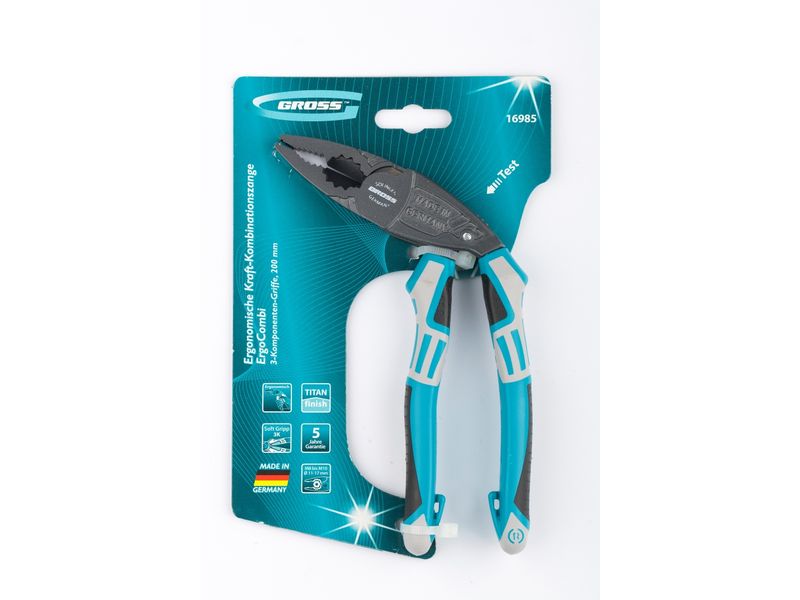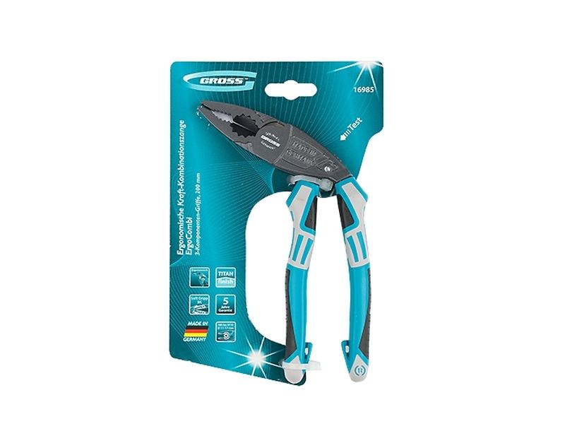 Комбинированные плоскогубцы с изогнутой головой Gross 16985 длиной 200 мм оснащены удобными трехкомпонентными рукоятками. Инструмент помогает захватывать крупные и мелкие детали или сгибать металлические листы, а благодаря специальным граням на рабочей части его можно использовать в качестве гаечного ключа. Специальные пазы на губках позволяют удерживать гвозди или проволоку во время работы. Рукоятки обладают диэлектрическими свойствами, однако техника безопасности запрещает работать под напряжением!
