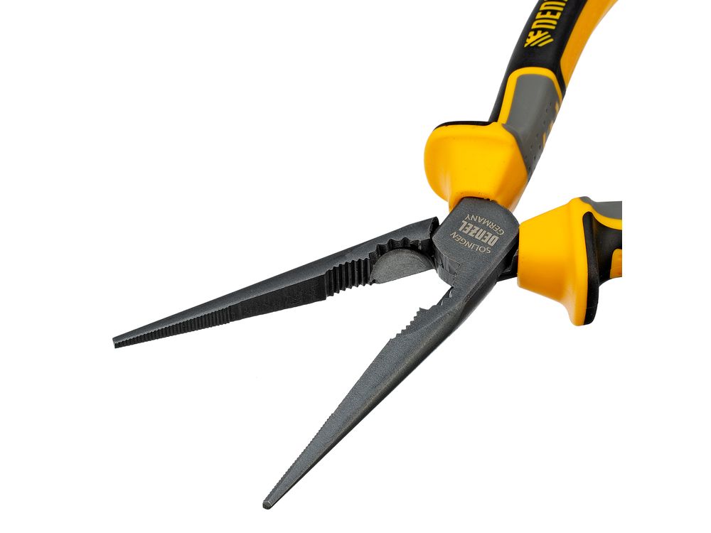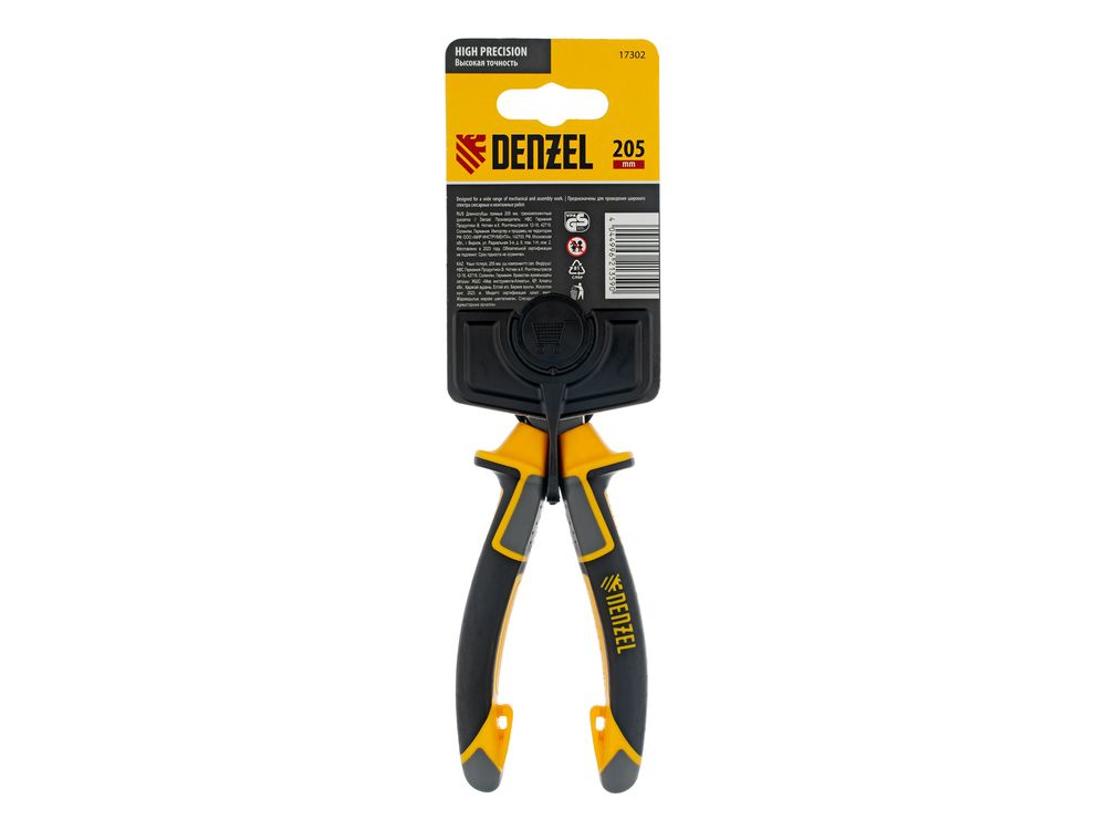 Прямые длинногубцы Denzel 17302 длиной 205 мм, с трехкомпонентными рукоятками, используются для работы с мелкими деталями и крепежом. Позволяют удерживать, сгибать и перекусывать провода или проволоку. Максимальный диаметр перерезаемой мягкой проволоки (алюминиевой, медной, с пределом прочности 220 Н/мм2) составляет 3,9 мм, проволоки средней жесткости и гвоздей (750 Н/мм2) — 3,2 мм, жесткой (1800 Н/мм2) — 2,2 мм. Инструмент оптимален для манипуляций в ограниченном пространстве. Ровные насечки на зажимных частях обеспечивают надежный захват и удержание деталей. Длинногубцы будут полезны во время проведения электромонтажных работ, ремонта оргтехники, техобслуживания автомобиля, пригодятся также в быту.