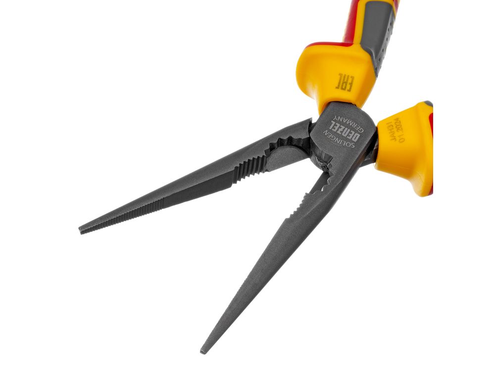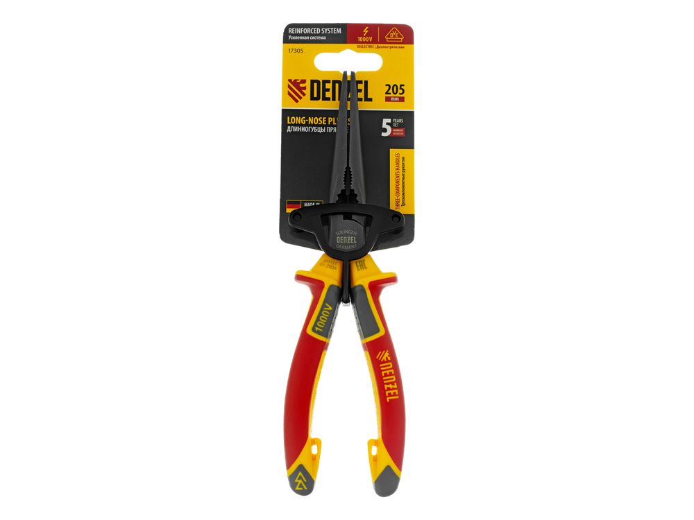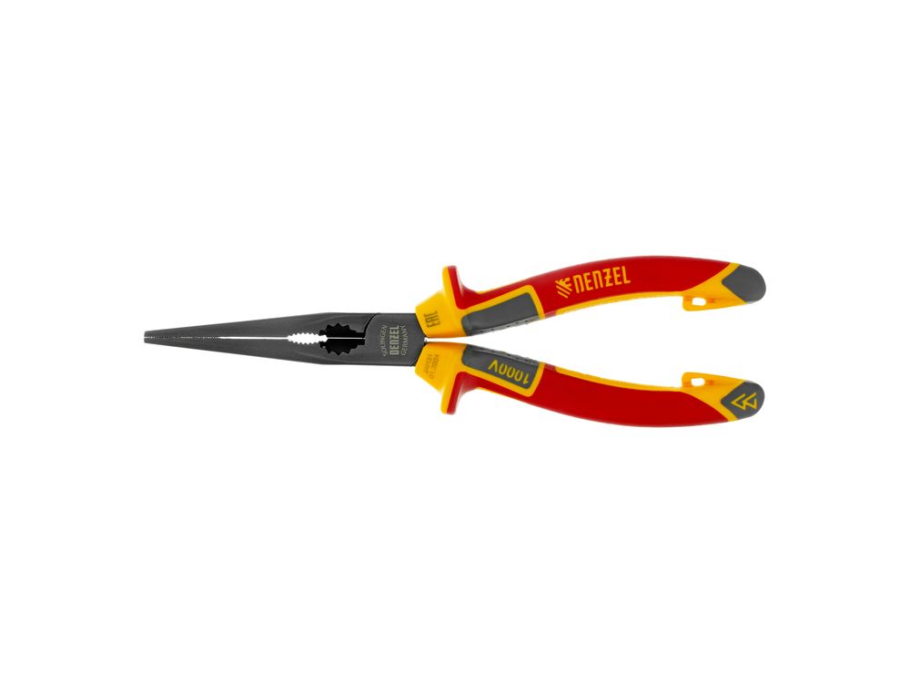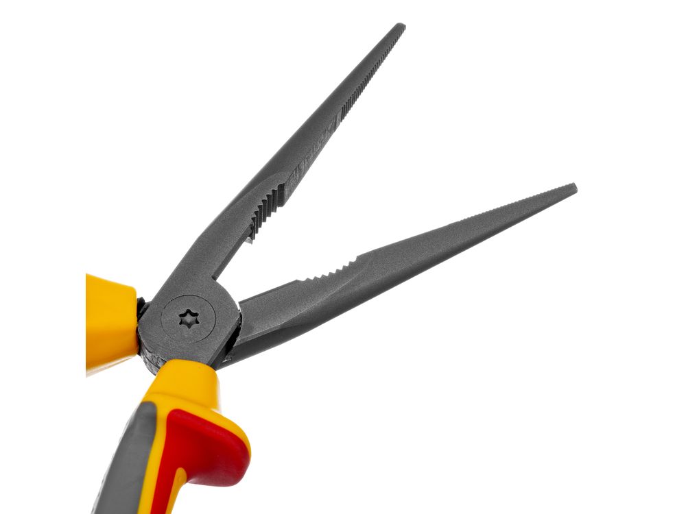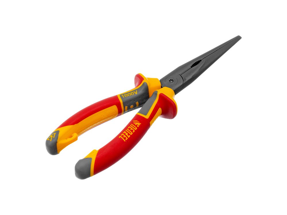 Длинногубцы прямые, диэлектрические рукоятки до 1000 В, трехкомпонентные рукоятки, 205мм