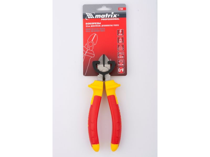 Бокорезы Matrix Insulated 17506 длиной 160 мм, с двухкомпонентными рукоятками, обладающими диэлектрическими свойствами и рассчитанными на напряжение до 1000 Вт, предназначены для откусывания проволоки, кабеля и проводов. Пригодятся также для резки материалов из металла и пластика. Важно — перед началом работ необходимо отключить напряжение в сети!