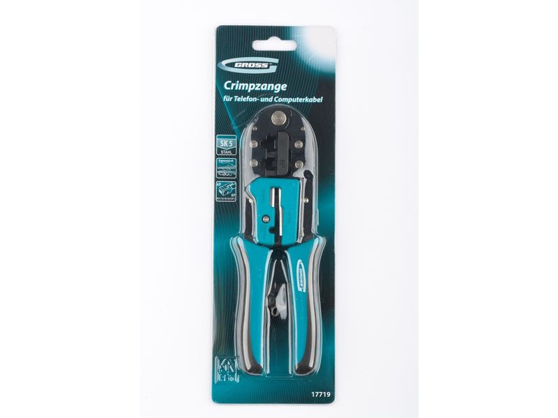 Клещи Gross 17719 предназначены для обжима телефонных и компьютерных клемм наиболее популярных типоразмеров RJ45, 8P и RJ11/12, 6P. Пригодятся частным мастерам и профессионалам для подключения компьютеров и телефонов к сети.