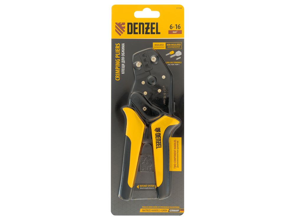 Клещи Denzel 17744 предназначены для обжима наконечников штыревых втулочных НШВ, НШВИ, НШВИ-2 сечением 6-16 мм2. Двухрычажная передача усилия сжатия позволяет увеличить эффективность работы без дополнительный усилий мастера. Инструмент пригодится частным и профессиональным мастерам при проведении электромонтажных работ.