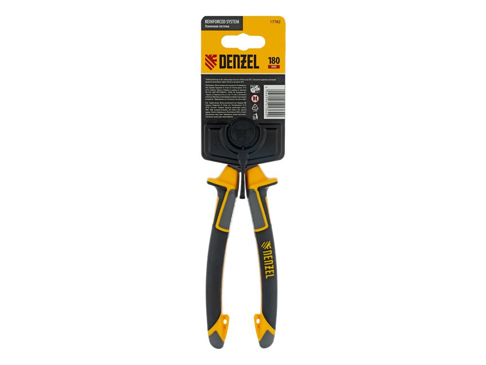 Бокорезы Denzel 17782 длиной 180 мм, с трехкомпонентными рукоятками, предназначены для разрезания кабелей из алюминия и меди, а также проволоки и стяжек. Максимальный диаметр перерезаемой мягкой проволоки (алюминиевой, медной, с пределом прочности 220 Н/мм2) составляет 7 мм, проволоки средней жесткости и гвоздей (750 Н/мм2) — 4 мм, жесткой (1800 Н/мм2) — 2,5 мм. Бокорезы используются для проведения слесарных и монтажных работ. Шарнир смещен к режущим кромкам, что позволяет сэкономить 20% усилий и максимально эффективно решать поставленные задачи.