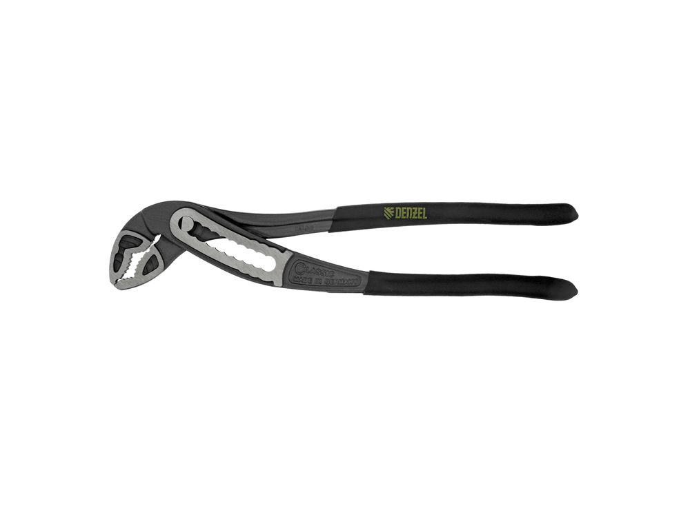 Переставные клещи Denzel 17902 длиной 240 мм, с обливными рукоятками, предназначены для фиксации и вращения деталей и заготовок различной формы. Подходят для захвата фитингов, труб, крепежных элементов. Инструмент используется при проведении ремонтных, монтажных, сантехнических работ.