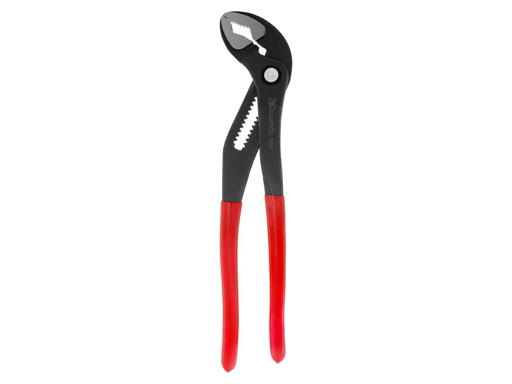 Переставные клещи Matrix 17927 длиной 300 мм, выполненные из хромованадиевой стали, с кнопочным механизмом и обливными рукоятками, используются для проведения монтажных и слесарных работ. Универсальный инструмент заменяет ключи различных размеров и применяется для фиксации заготовок, откручивания гаек, зажима и удержания труб диаметром до 64 мм.