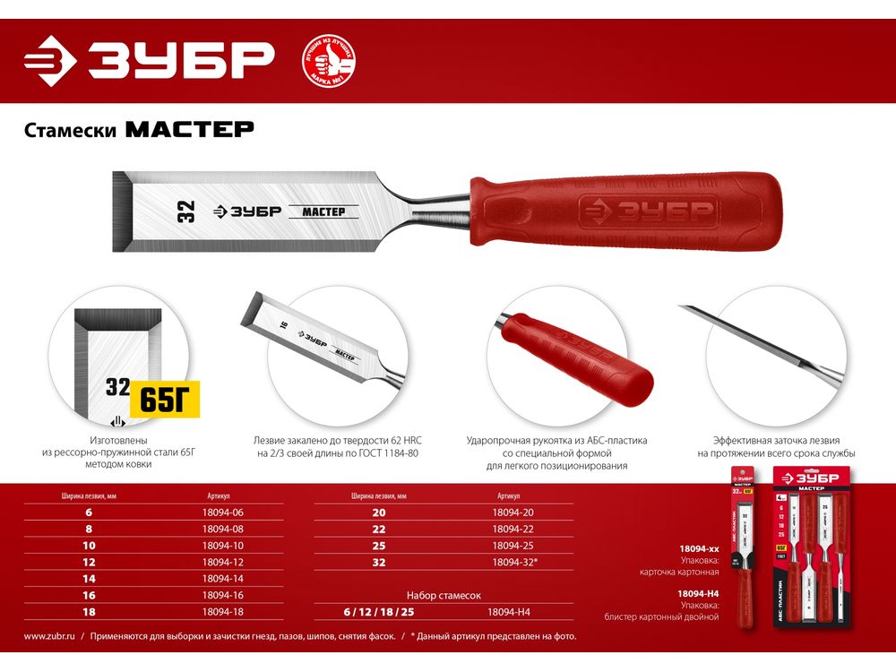 Купить ЗУБР МАСТЕР набор стамесок с пластиковой рукояткой, 4шт