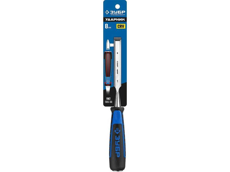Купить Стамеска ЗУБР "ЭКСПЕРТ" с ударопрочной двухкомпонетной ручкой и стальным затыльником для ударных работ, 8мм